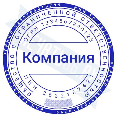 - Печать ООО с защитой без оснастки по цене 849 рублей и еще 69 видов печатей с защитой